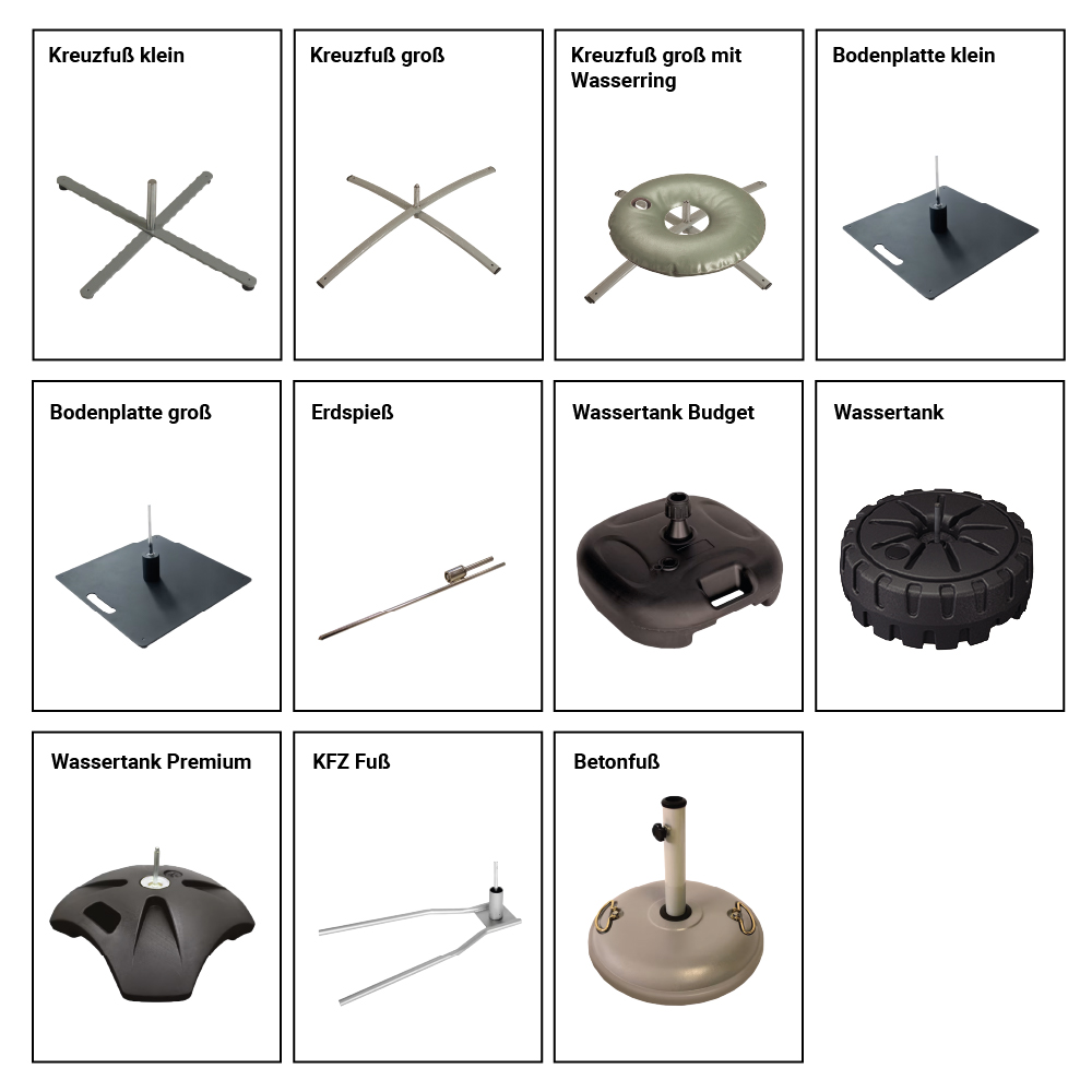Dank der verschiedenen Standfüße, die für die Fahne erhältlich sind, kann der Standfuß an die jeweilige Größe, den Standort und den Untergrund angepasst werden, damit die Fahne überall stabil und sicher steht - egal ob auf Asphalt, Rasen, Sand oder Schnee. Soll die Fahne auf dem Boden stehen, so kann zwischen Kreuzfüßen, Bodenplatten, Wassertank, KFZ-Fuß oder ein Betonfuß gewählt werden, soll sie im Boden verankert werden, empfiehlt sich die Verwendung eines Erdspießes. Bei Kreuzfuß und Bodenplatte kann zur zusätzlichen Beschwerung ein Wasserring verwendet werden, um die optimale Standfestigkeit zu gewährleisten. Bei guter Pflege kann die Fahne eine Lebensdauer von sechs bis acht Monaten erreichen.